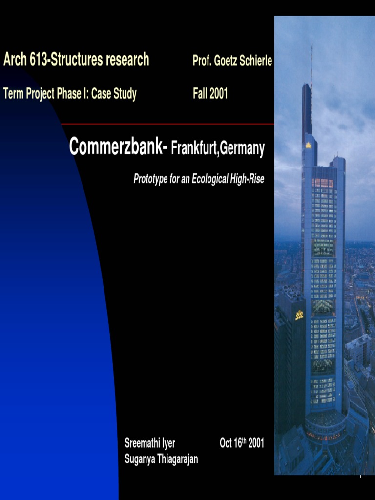 Such designs in office towers can be traced in many projects, mainly for the commerzbank tower suiss re and hearst corporation commerzbank foster. Commerzbank tower stands as the tallest building in the eu.
